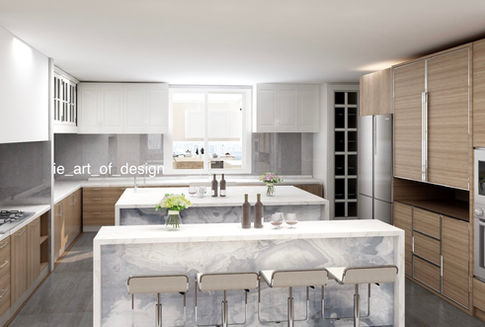 This kitchen was created using exquisite materials such as marble and wood. Furthermore, this kitchen was integrated into the overall concept of a clean and modern look. Please let me know if you would like a consultation to create your very own and unique kitchen design!